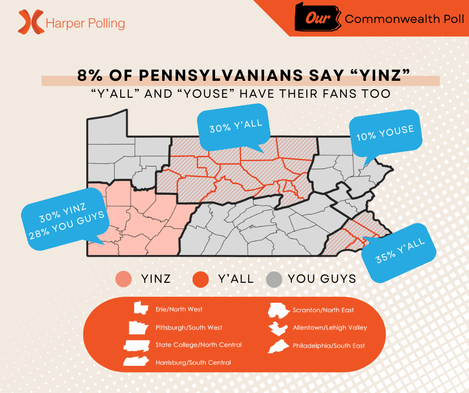 “Ya’ll” is particularly popular among younger Pennsylvanians and in State College, Harrisburg, and Philadelphia.